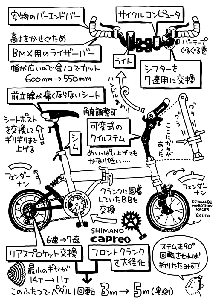 以前、ブログにこの件を書いて以降「小径自転車 改造」のキーワードで毎月4〜5件アクセスがあるので、わずかながらもニーズはあるのではないかと……。