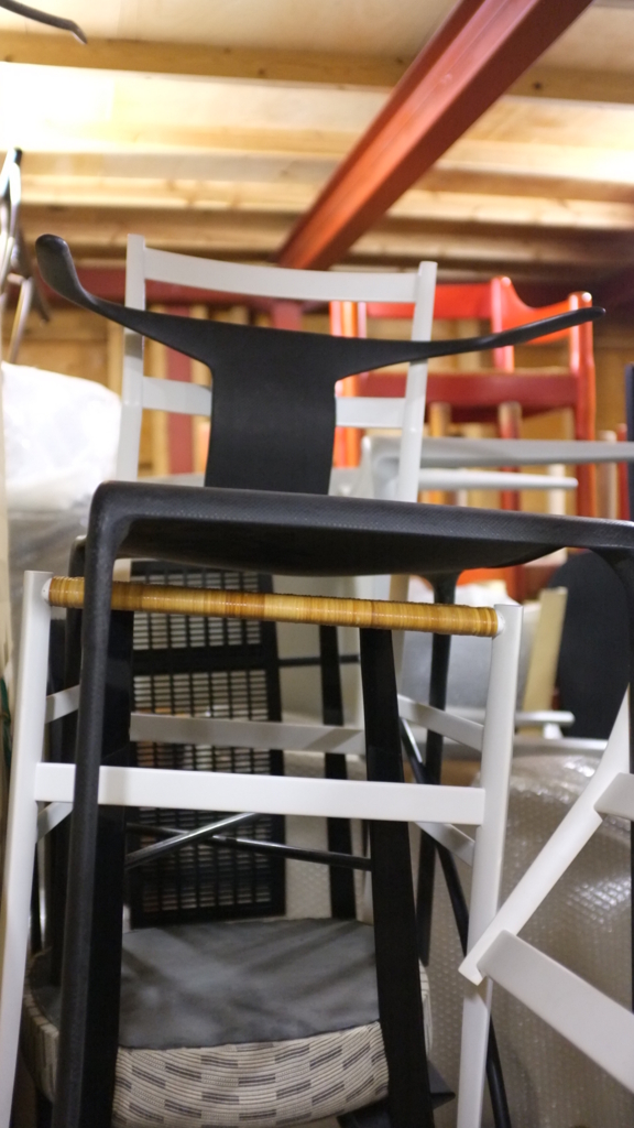 一番気になったのは(といっても、とても全部は見られなかったのですが)以下の椅子です。スペースがなく、積み上がったままの写真で恐縮です。