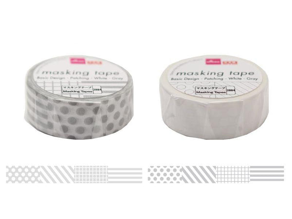 「ダイソー マスキングテープ(ベーシック柄、つぎはぎ、白、グレー)」