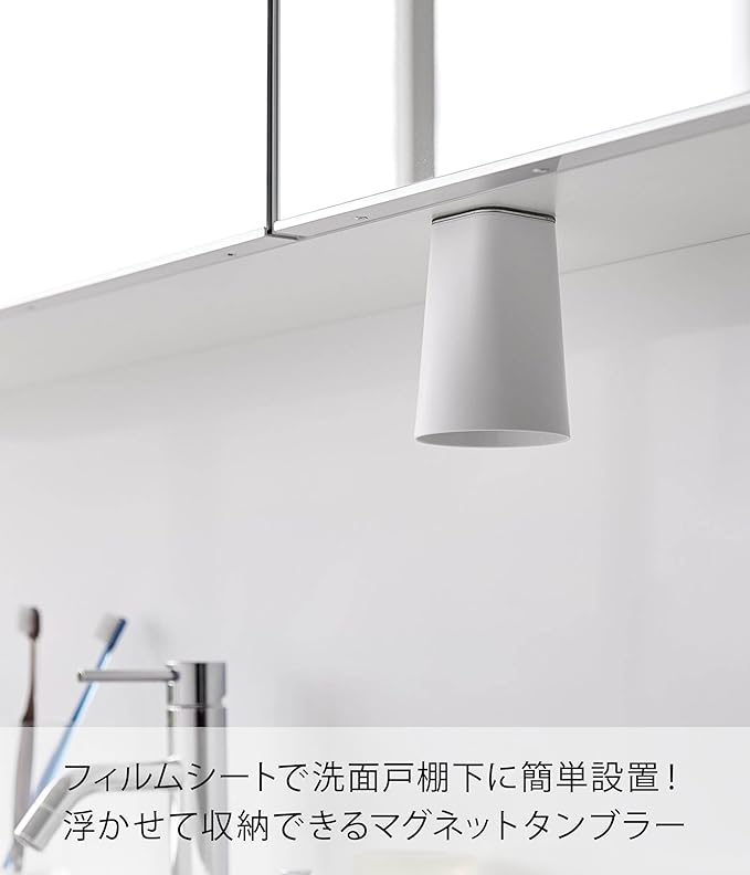 洗面戸棚下に浮かせて収納できるタンブラーです。