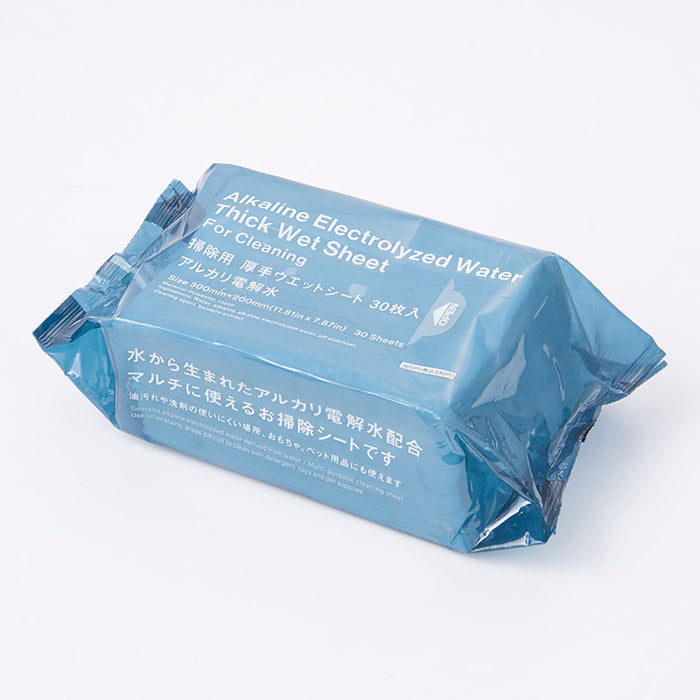 水色のパッケージは、水から生まれたアルカリ電解水配合。油汚れやペット用品、そのほかの洗剤の使いにくい場所にも使えます。