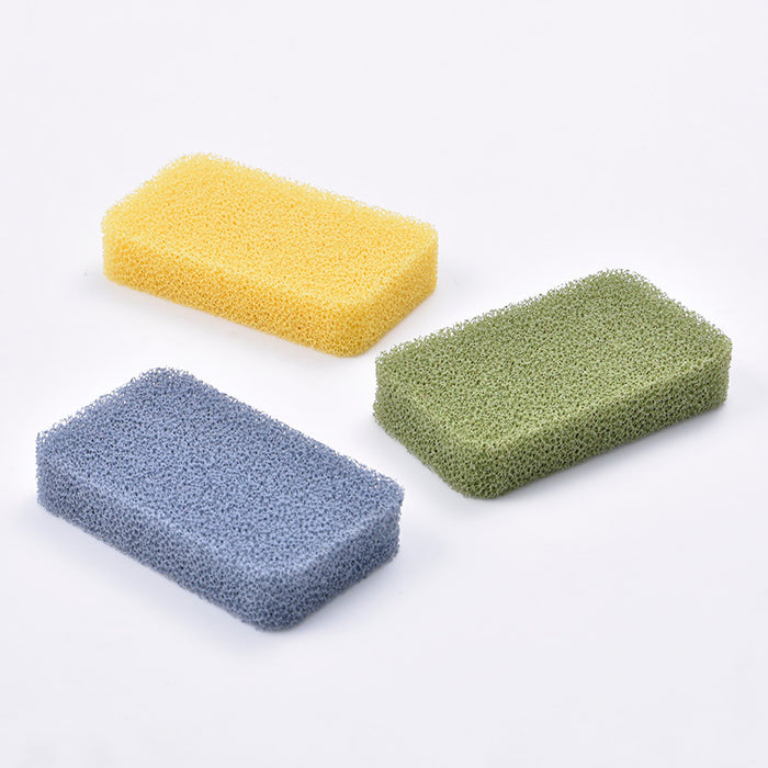 シリコーンの弾力で食器を傷つけにくく汚れを落としやすいスポンジ。油汚れや色が付きにくく、スポンジが乾きやすいのが特徴です。3色セットで、使い分けもしやすくなっています。